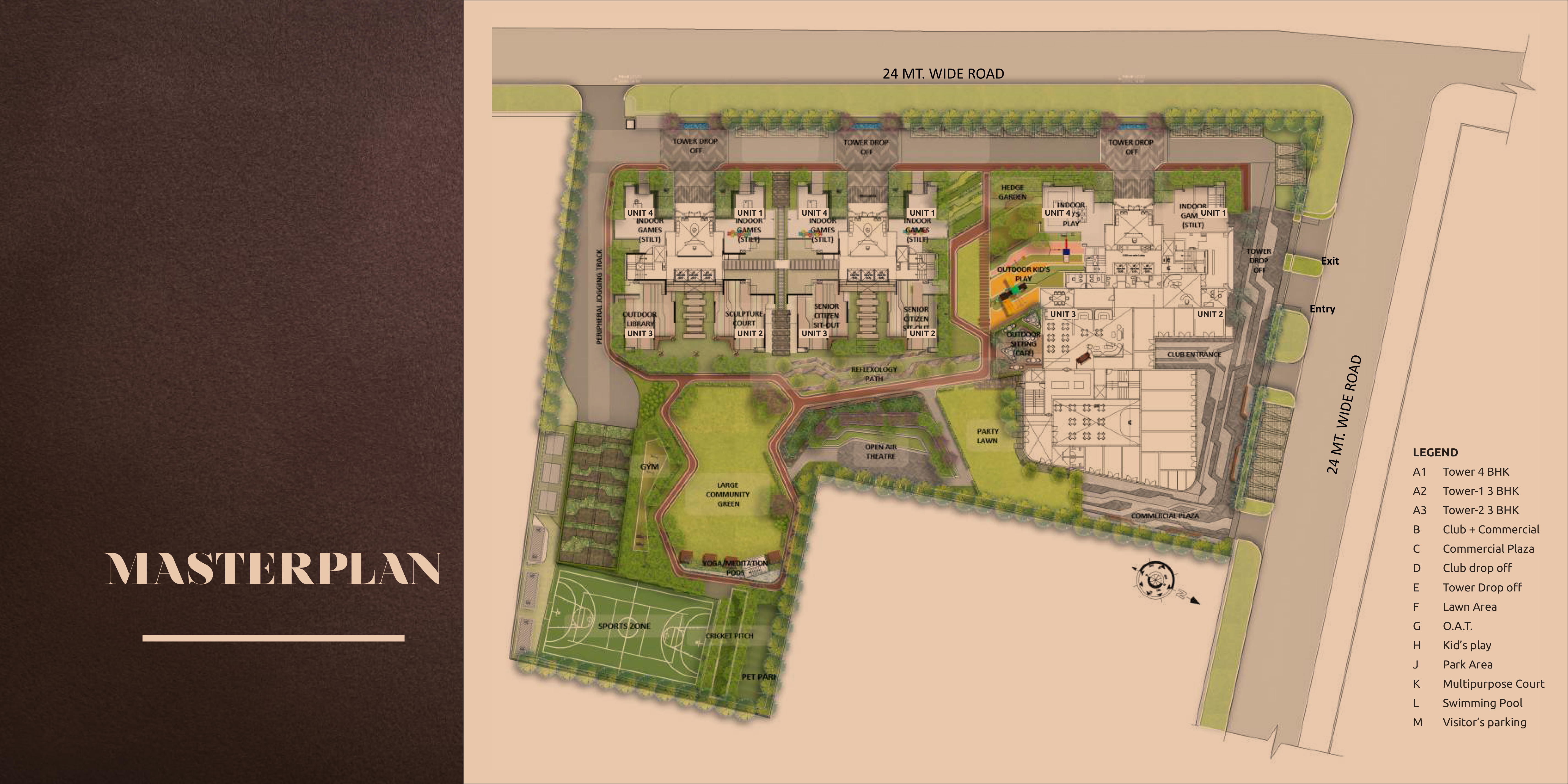 Tower A2 & A3 have 3BHK Apartments & Tower A1 for 4BHK flats. The primary parameter of luxury living is space.